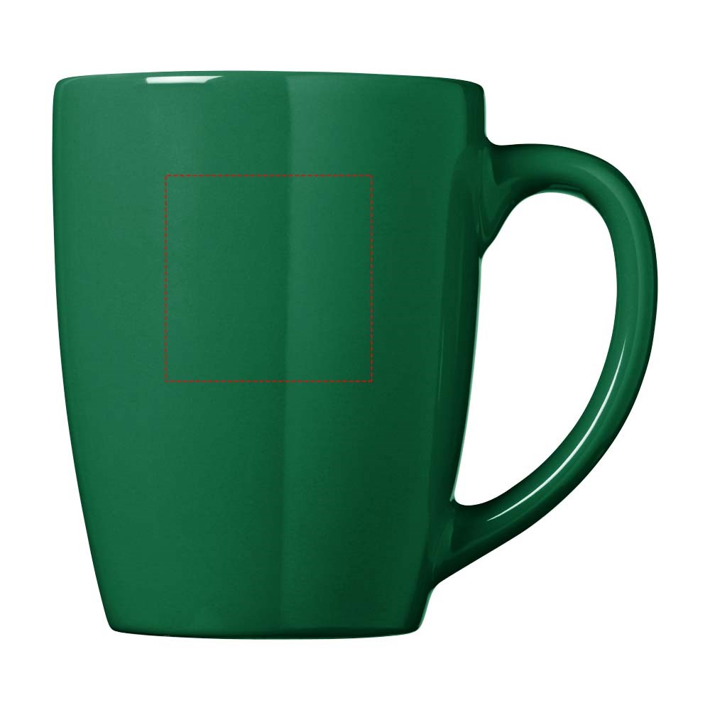 Trendy design mok van keramiek. Vaatwasmachinebestendig volgens EN12875-1 (minimaal 125 wasbeurten) voor alle decoratiemethoden. Inhoud 350 ml. Geleverd in een witte geschenkverpakking.