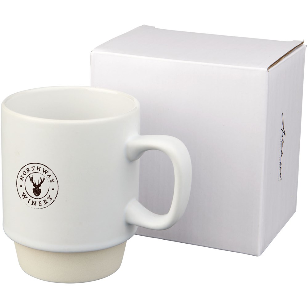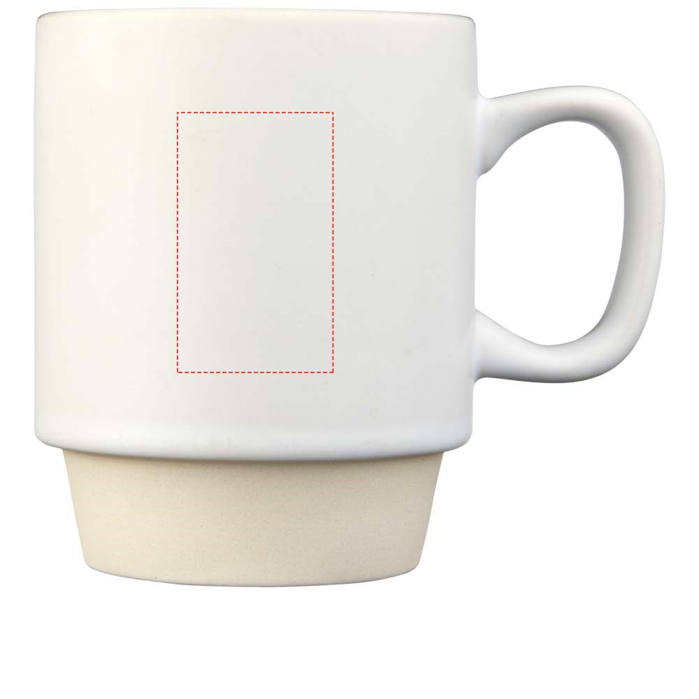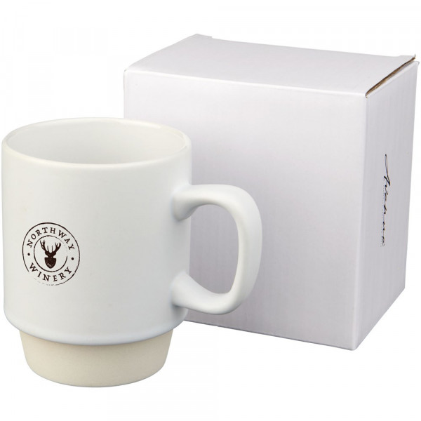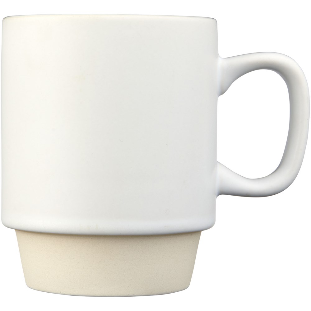 Keramische mok met een matte afwerking en trendy ongeglazuurde bodem. Opstapelen mogelijk door design. Vaatwasmachinebestendig volgens EN12875-1 (minimaal 125 wasbeurten) voor alle decoratiemethoden. Inhoud 420 ml. Geleverd in een Avenue geschenkverpakking.