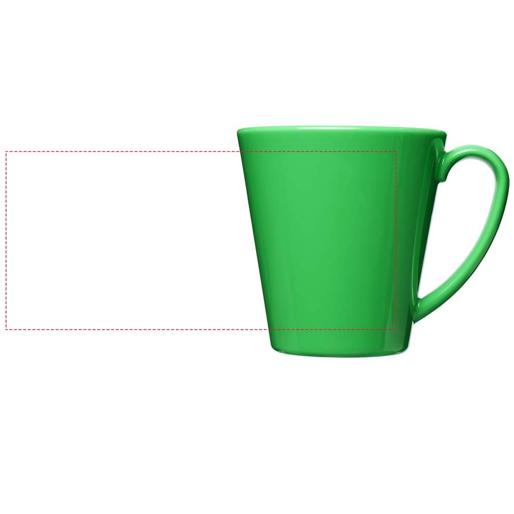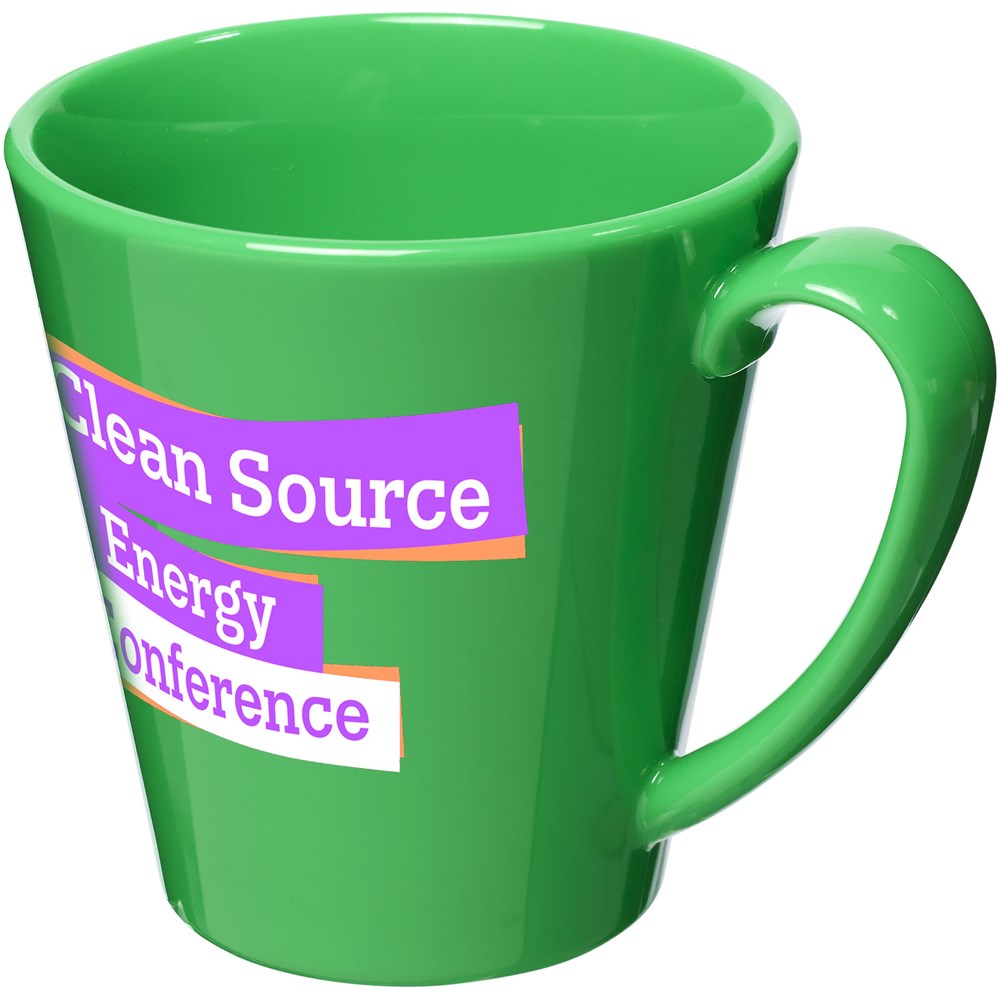 Duurzame, enkelwandige kunststof mok. Volume 350 ml. Gemaakt in het Verenigd Koninkrijk.