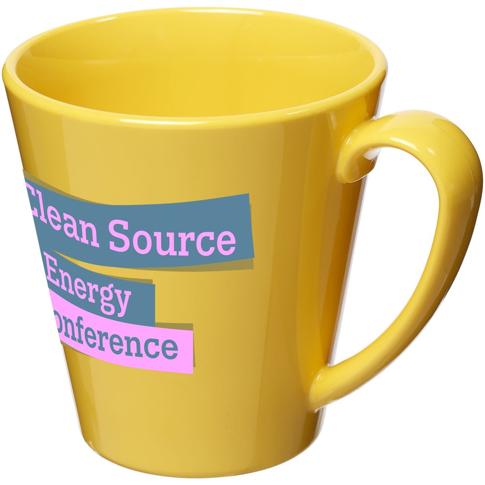 Duurzame, enkelwandige kunststof mok. Volume 350 ml. Gemaakt in het Verenigd Koninkrijk.