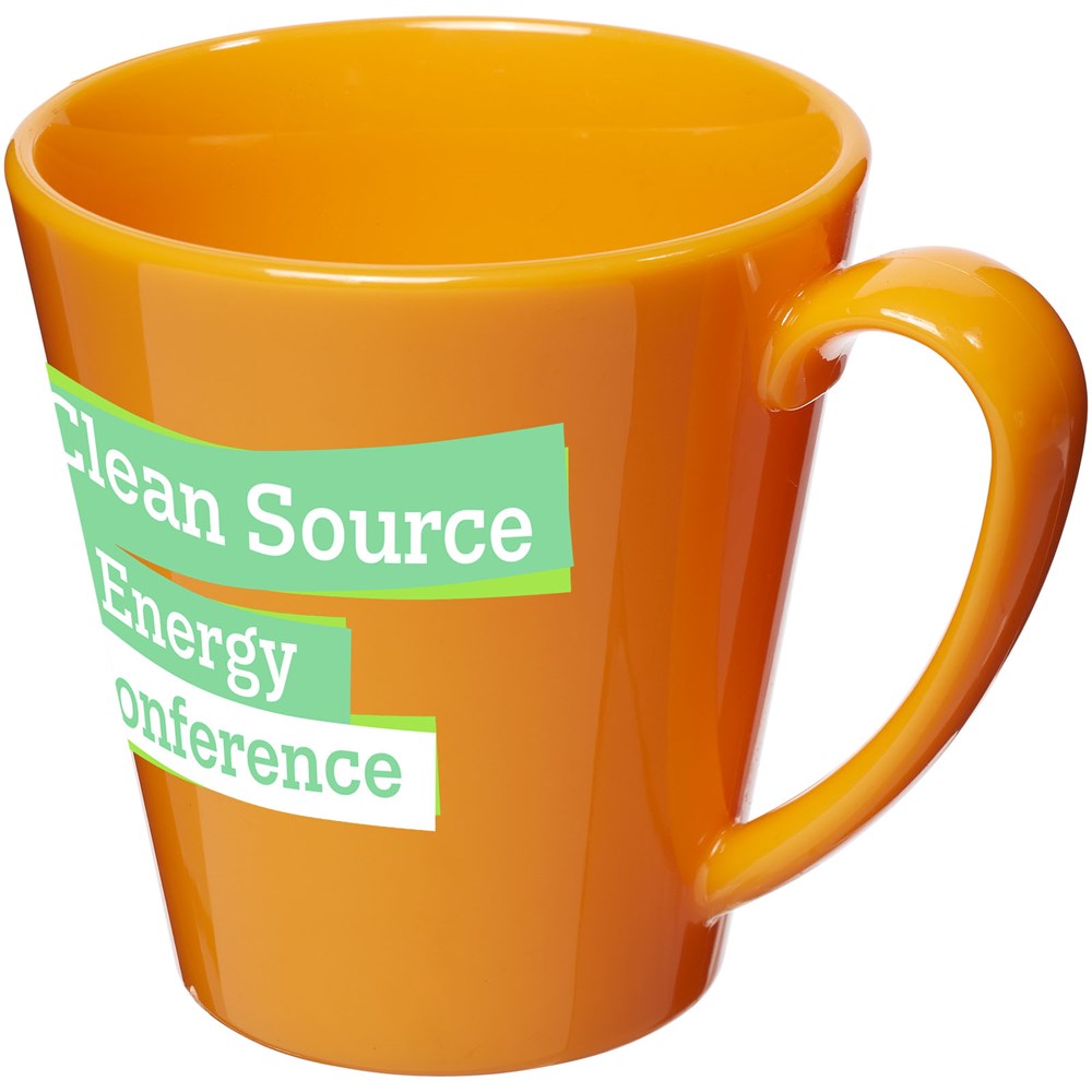 Duurzame, enkelwandige kunststof mok. Volume 350 ml. Gemaakt in het Verenigd Koninkrijk.