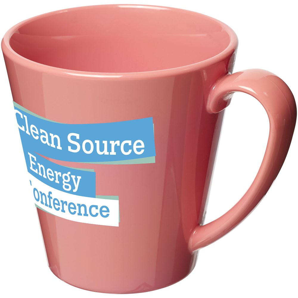 Duurzame, enkelwandige kunststof mok. Volume 350 ml. Gemaakt in het Verenigd Koninkrijk.