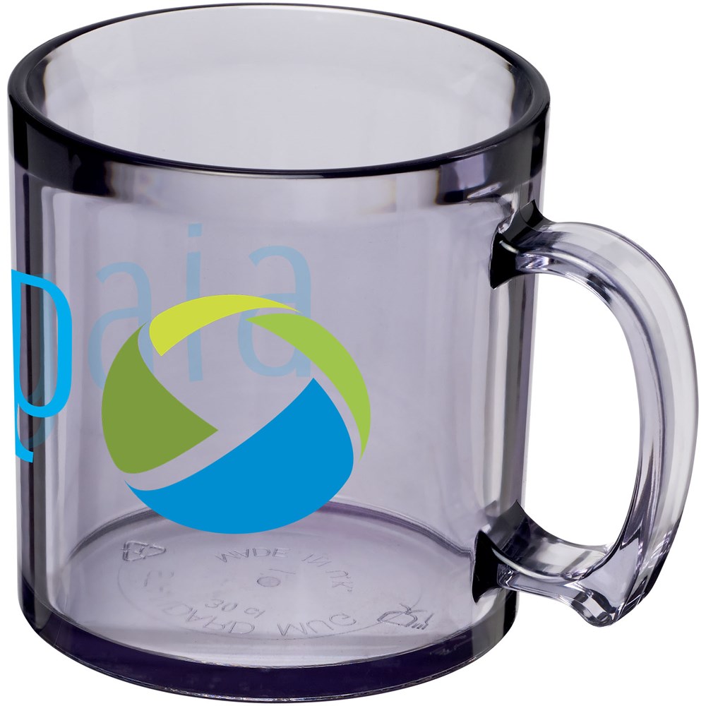 Duurzame, enkelwandige kunststof mok. Volume 300 ml. Gemaakt in het Verenigd Koninkrijk.