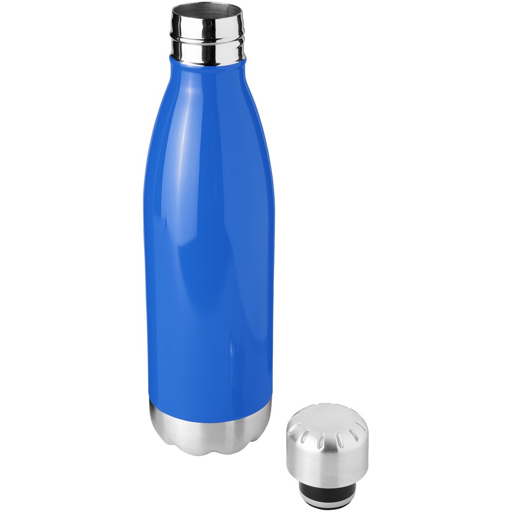 Dubbelwandige roestvrijstalen vacuüm constructie waarmee uw drankje koud blijft gedurende 15 uur of warm gedurende ten minste 5 uur. De constructie voorkomt ook condensatie aan de buitenkant van de fles. Roestvrijstalen schroefdeksel. Volumecapaciteit is 510 ml.