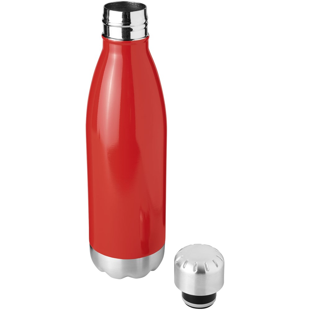 Dubbelwandige roestvrijstalen vacuüm constructie waarmee uw drankje koud blijft gedurende 15 uur of warm gedurende ten minste 5 uur. De constructie voorkomt ook condensatie aan de buitenkant van de fles. Roestvrijstalen schroefdeksel. Volumecapaciteit is 510 ml.