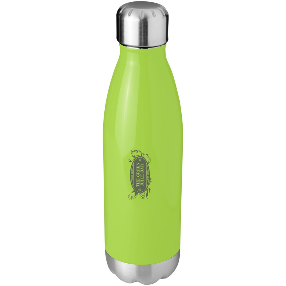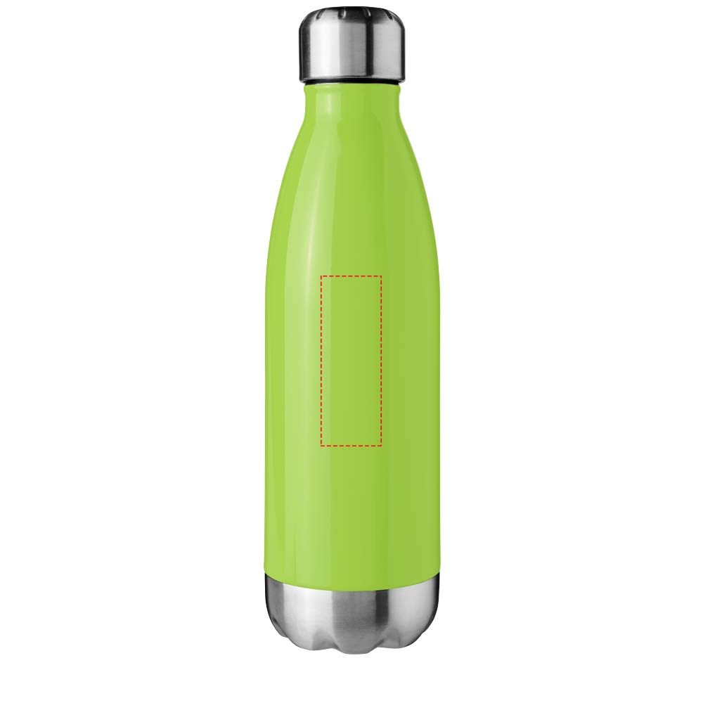 Dubbelwandige roestvrijstalen vacuüm constructie waarmee uw drankje koud blijft gedurende 15 uur of warm gedurende ten minste 5 uur. De constructie voorkomt ook condensatie aan de buitenkant van de fles. Roestvrijstalen schroefdeksel. Volumecapaciteit is 510 ml.