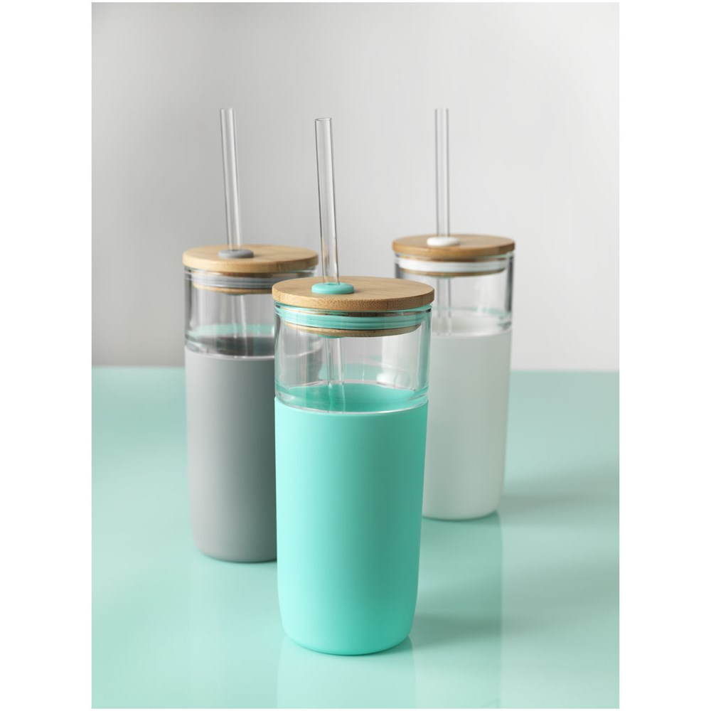 Enkelwandige glazen fles, comfortabele soft greep, bamboo druk sluiting, bijpassend Tritan ™ rietje. Kan niet in de vriezen of de magnetron. Kies tussen kleuren imprint of een lasergravure die vaatwasbestendig is. Inhoud 600ml. Geleverd in een Avenue geschenkverpakking.