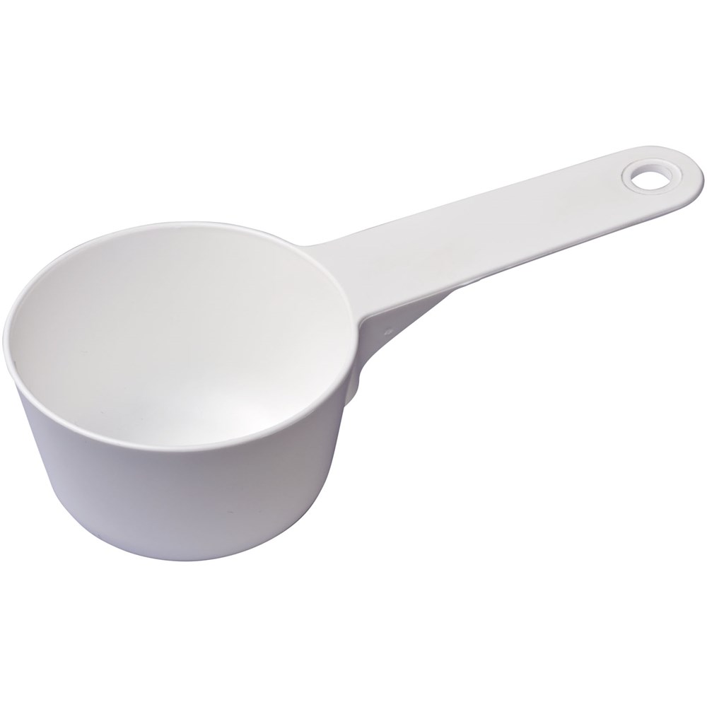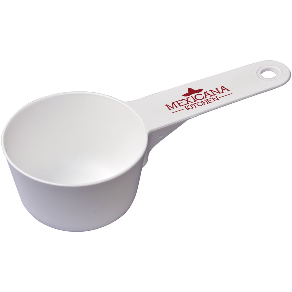 Maatlepel die tot 100 ml aan vloeistof of granen kan bevatten. Verkrijgbaar in diverse kleuren.