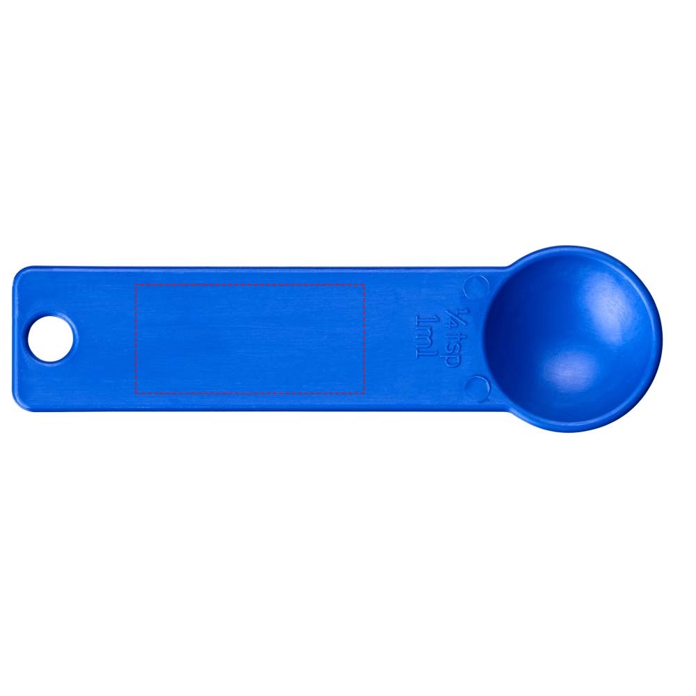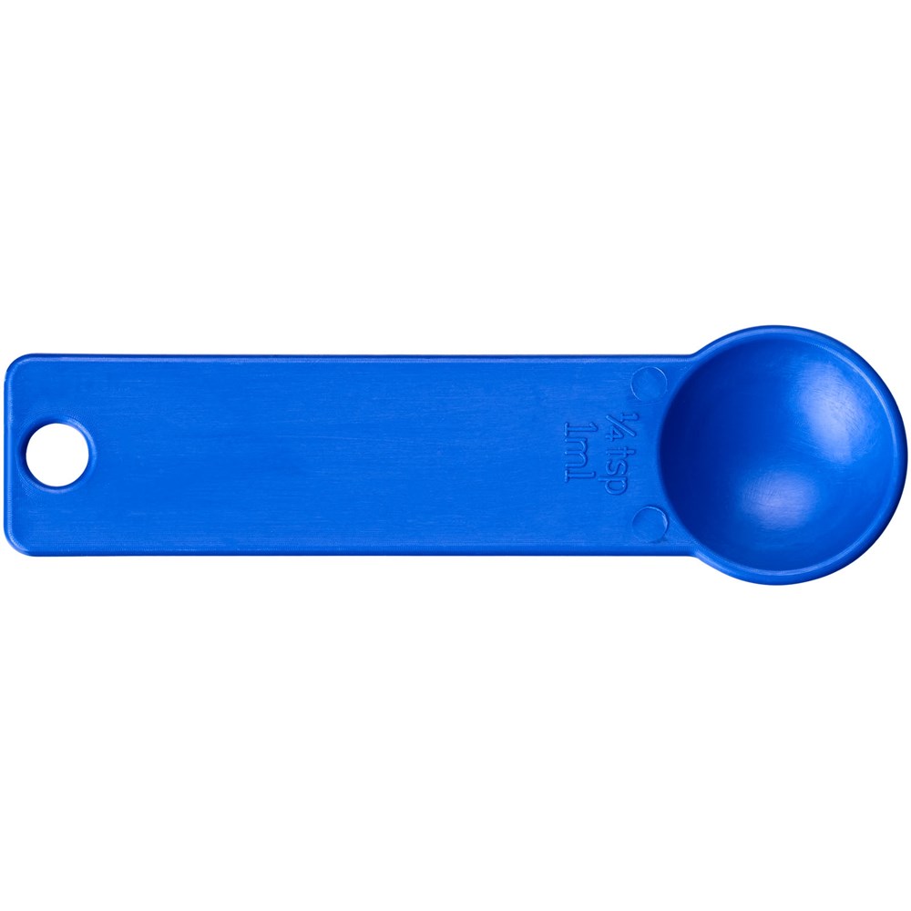 Een set van vier maatlepels, allemaal bevestigd aan een ring. De set bestaat uit 1/4 theelepel, 1/2 theelepel, 1 theelepel en 1 eetlepel. Verkrijgbaar in diverse kleuren.