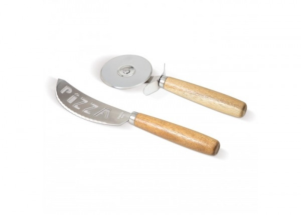Handige set met een pizzasnijder en mes waarmee een pizza binnen no-time is gesneden. De handvatten van acaciahout zorgen voor een luxe uitstraling. Wordt in een geschenkverpakking geleverd.