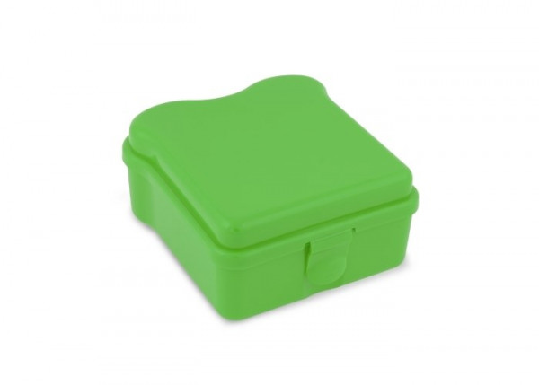 Lunchbox in de vorm van een boterham gemaakt van PP. De broodtrommel is gemaakt uit één deel. Met een clip aan de voorkant voor het afsluiten van de doos. Made in Europe.
