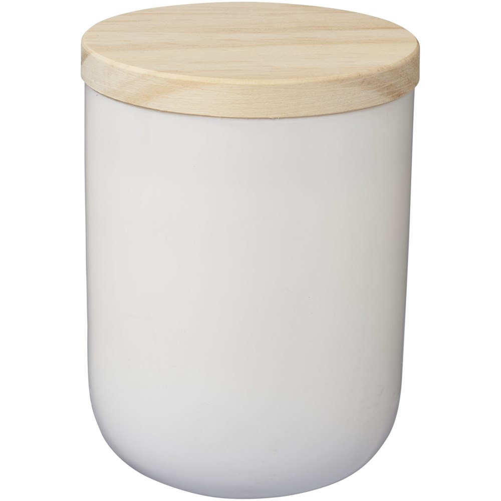 Verfijnt elke kamer met het ontspannende licht van een kaars. Lani glazen kaarsenhouder met houten deksel. Gepresenteerd in een feestgeschenkverpakking.