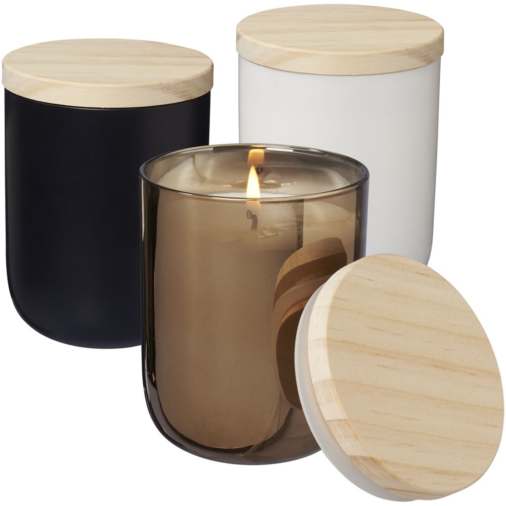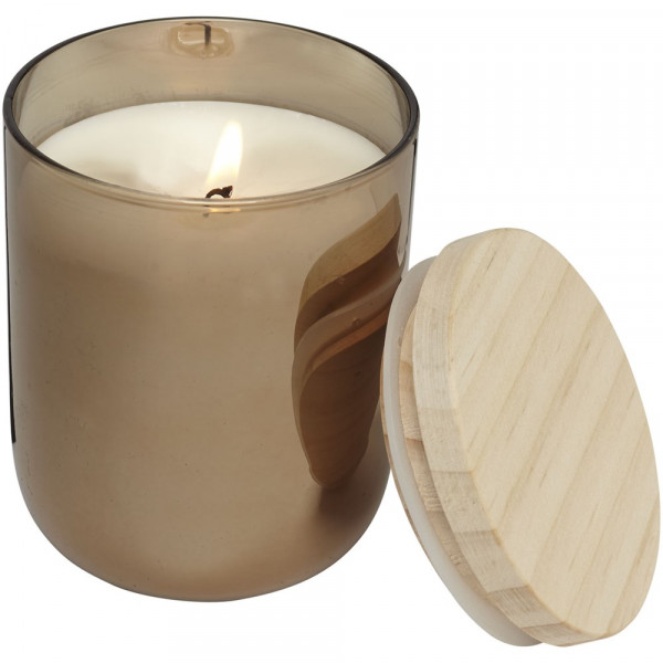 Verfijnt elke kamer met het ontspannende licht van een kaars. Lani glazen kaarsenhouder met houten deksel. Gepresenteerd in een feestgeschenkverpakking.