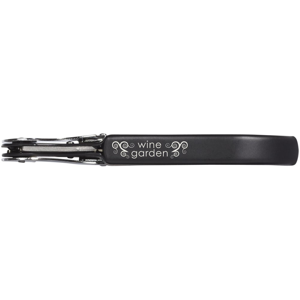 Sommeliersmes met kurkentrekker, flessenopener en capsulesnijder. Geleverd in witte geschenkverpakking (afmetingen: 12,4 x 2,5 x 1,5 cm).