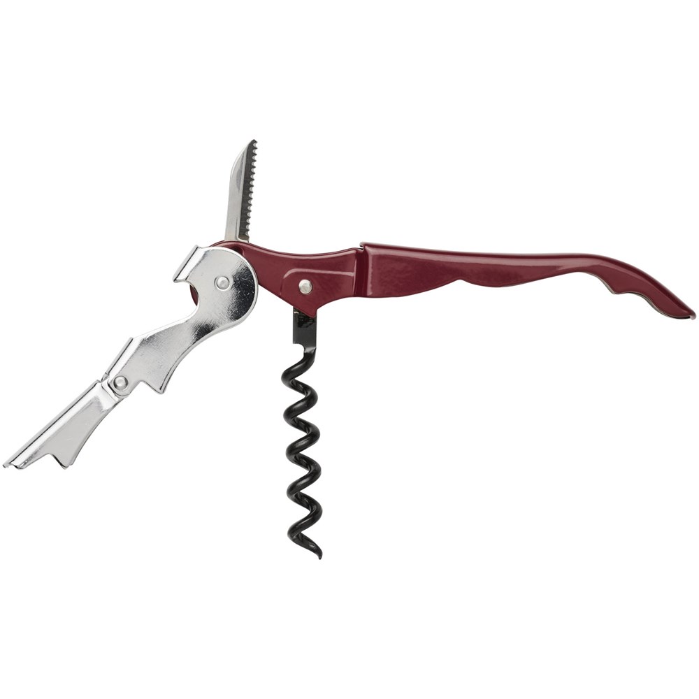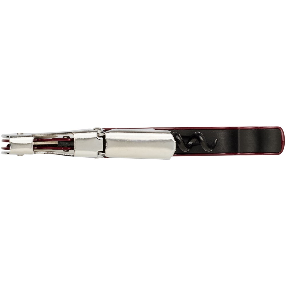 Sommeliersmes met kurkentrekker, flessenopener en capsulesnijder. Geleverd in witte geschenkverpakking (afmetingen: 12,4 x 2,5 x 1,5 cm).