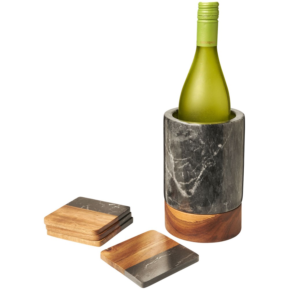 Wijnkoeler gemaakt van handgesneden marmer en hoogwaardig acaciahout.