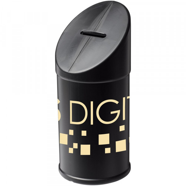 Deze collectebus kan labels hebben op zowel beide zijkanten als op de bovenkant. Het is een geweldig cadeau dat ook nog eens dient als spaarpot. Geleverd in een platte verpakking.
