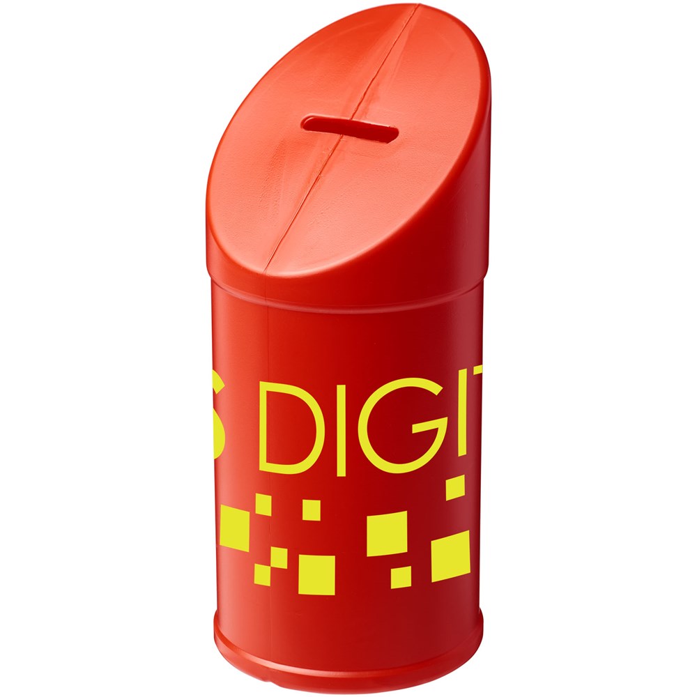 Deze collectebus kan labels hebben op zowel beide zijkanten als op de bovenkant. Het is een geweldig cadeau dat ook nog eens dient als spaarpot. Geleverd in een platte verpakking.