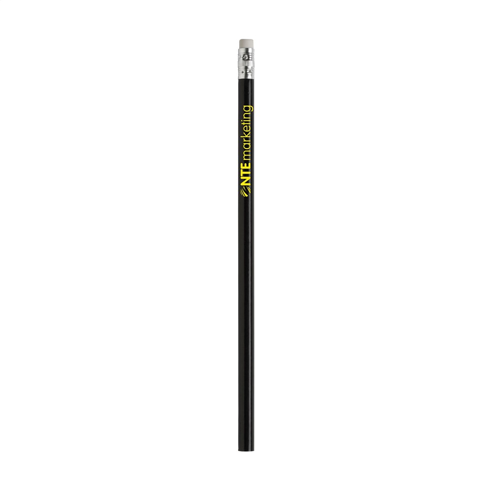 Ongeslepen, houten (HB) potlood met gum. Voorzien van een glanzende laklaag. mehr