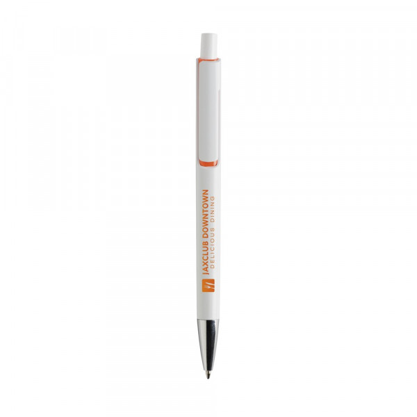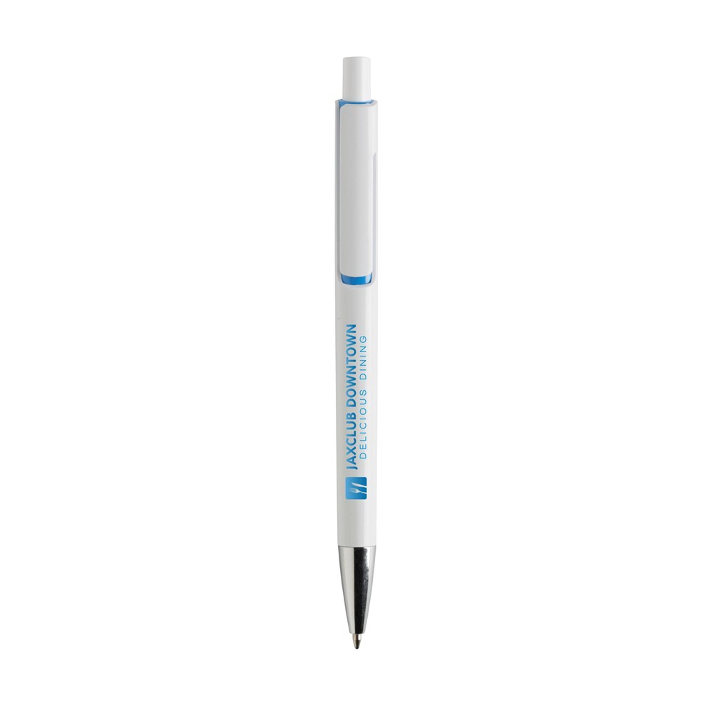 Blauwschrijvende balpen met uniek design: de body en clip van deze balpen zijn uit één geheel vormgegeven en dat maakt deze pen tot een bijzondere eyecatcher. Met opvallend kleuraccent onder de optisch 'zwevende' clip.