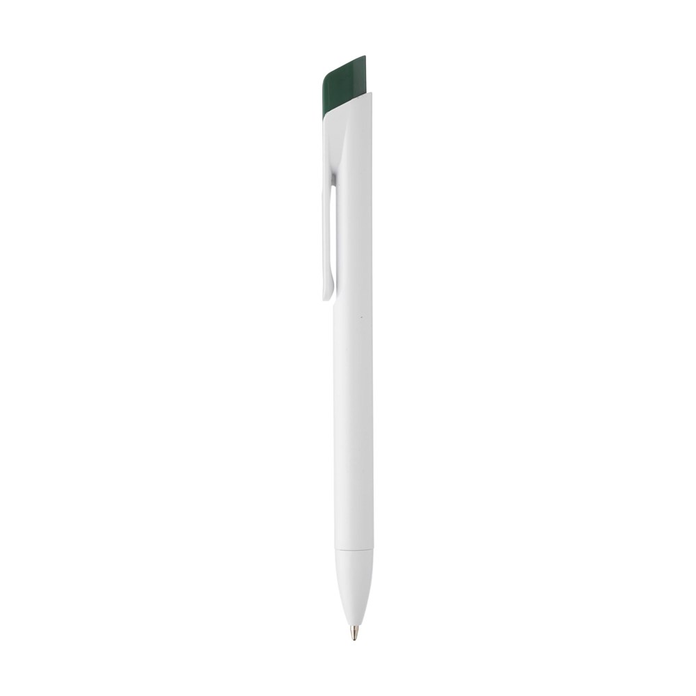 Blauwschrijvende balpen in matt finish. Met opmerkelijke clip en drukknop die perfect op elkaar aansluiten.