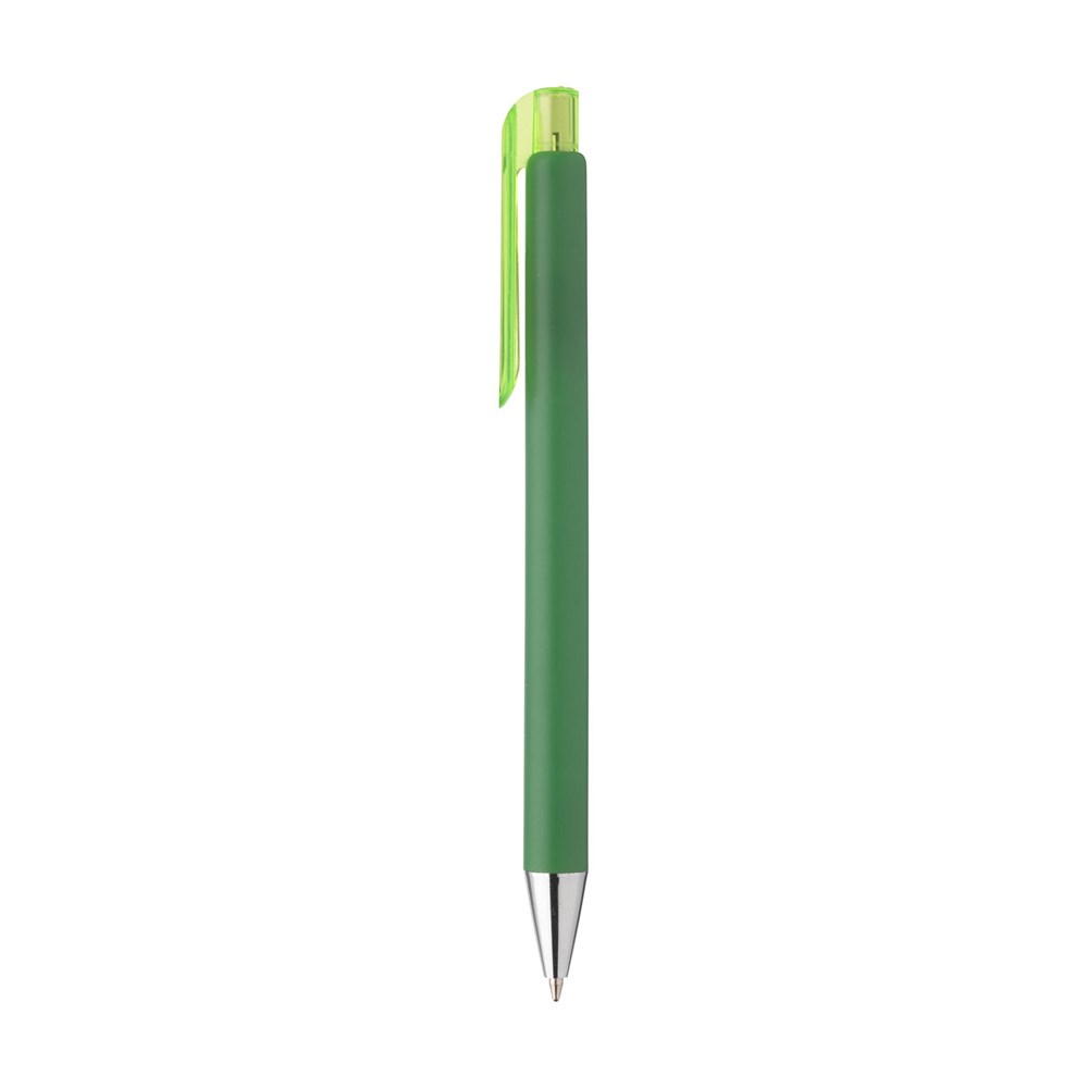 Stijlvolle, blauwschrijvende promotiebalpen met houder in matt finish en transparantgekleurde clip/drukknop.