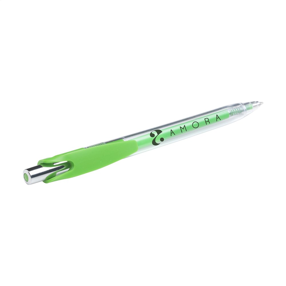 Blauwschrijvende balpen met transparante houder, opvallende en modern vormgegeven clip, in het... mehr
