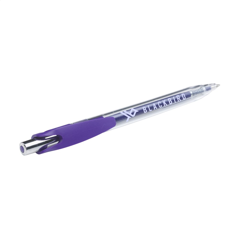 Blauwschrijvende balpen met transparante houder, opvallende en modern vormgegeven clip, in het... mehr