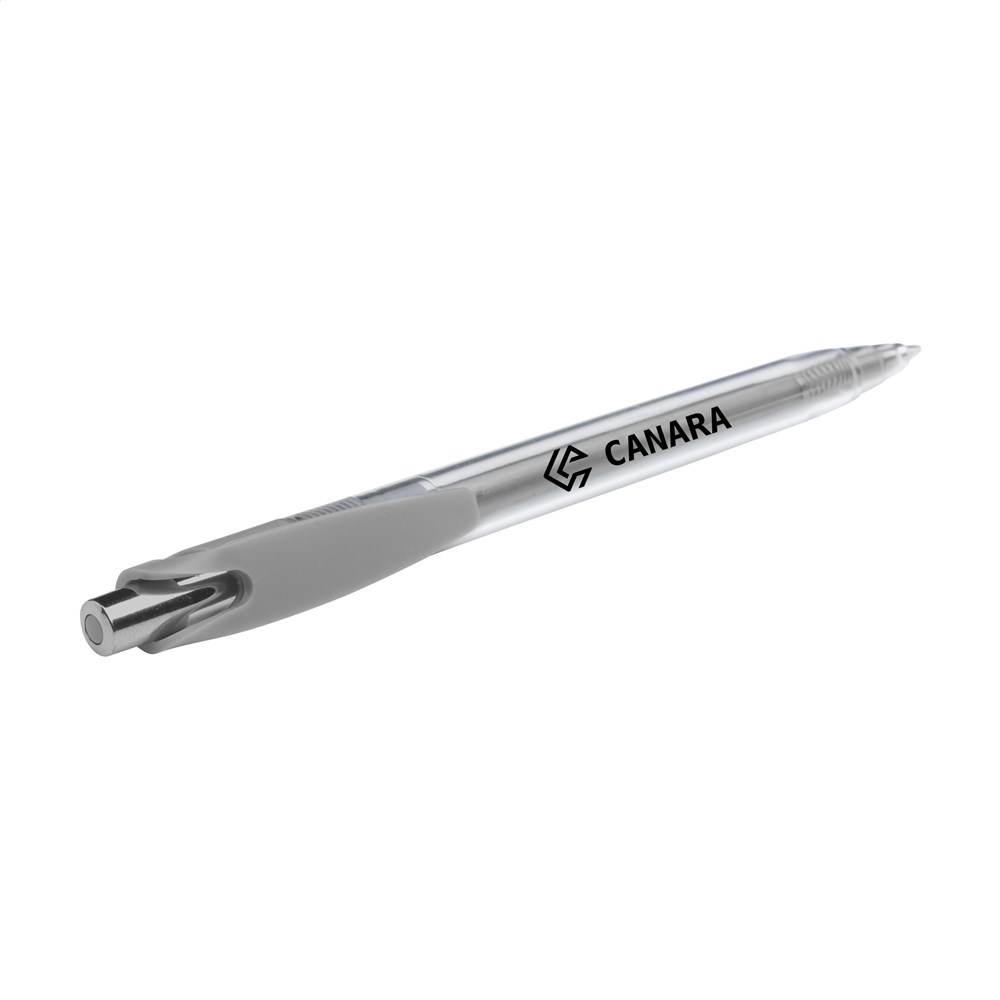 Blauwschrijvende balpen met transparante houder, opvallende en modern vormgegeven clip, in het... mehr