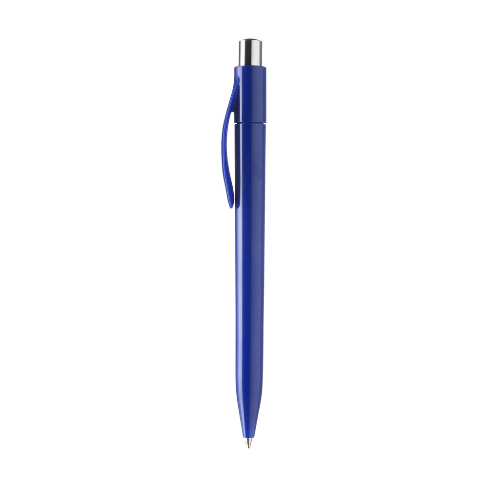 Blauwschrijvende balpen. Met matchend kleuraccent in de zilverkleurige drukknop. mehr