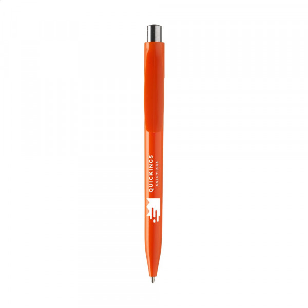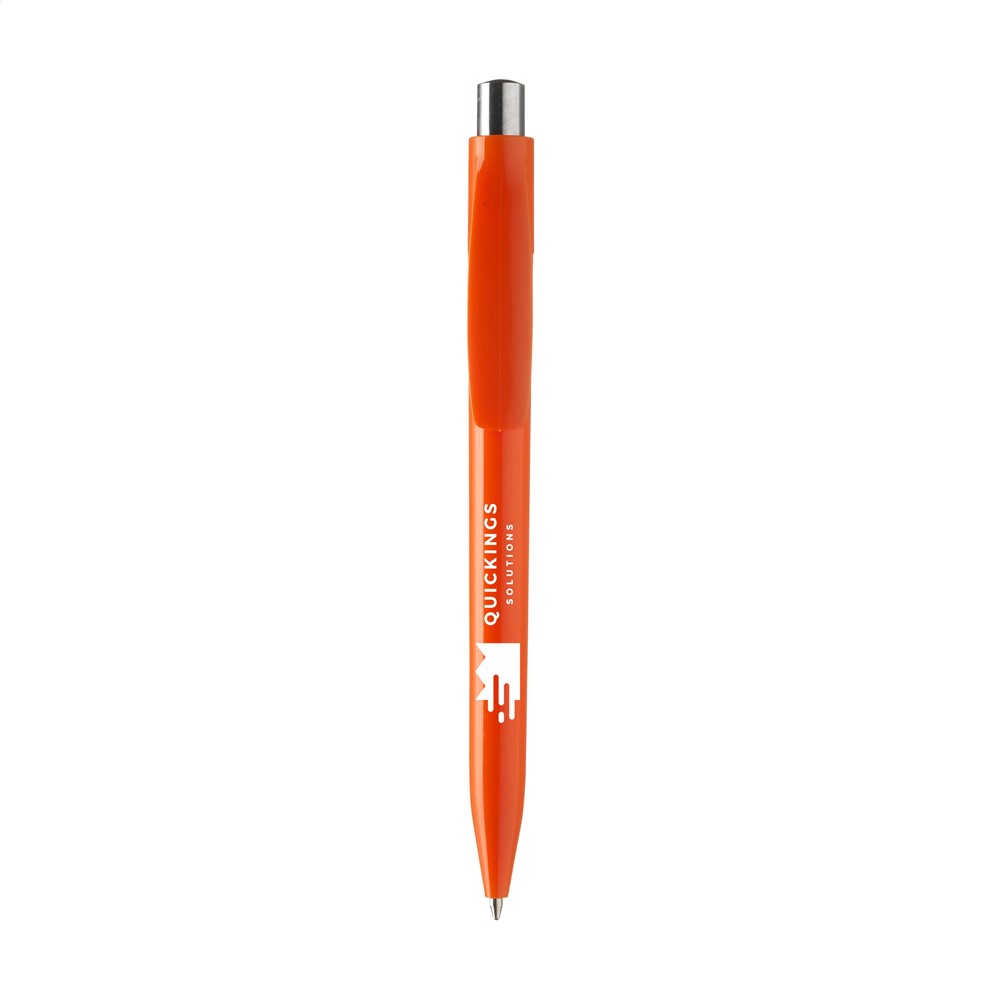 Blauwschrijvende balpen. Met matchend kleuraccent in de zilverkleurige drukknop.