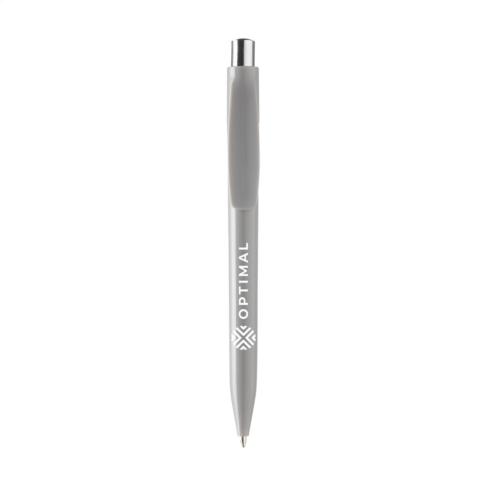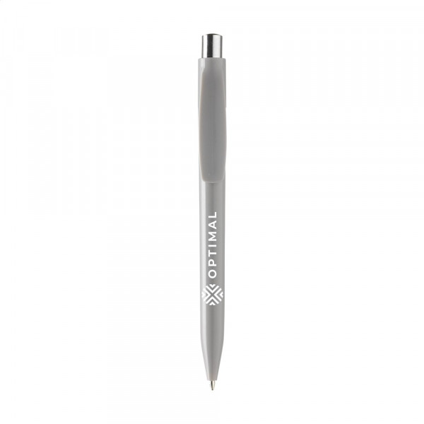 Blauwschrijvende balpen. Met matchend kleuraccent in de zilverkleurige drukknop.