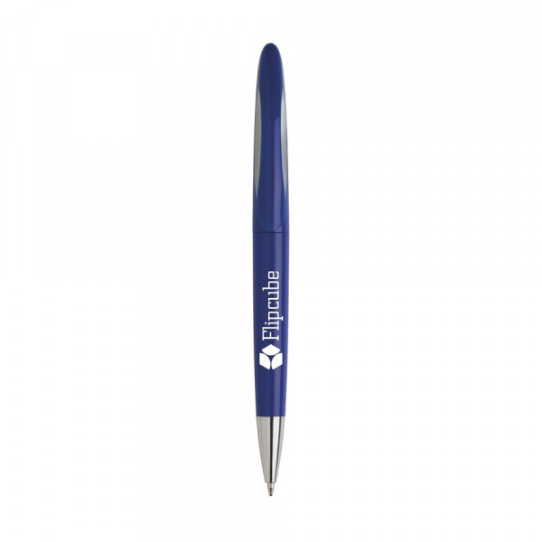Blauwschrijvende balpen met fraai vormgegeven clip voorzien van een opvallend, grijs kleuraccent en draaikliksysteem.