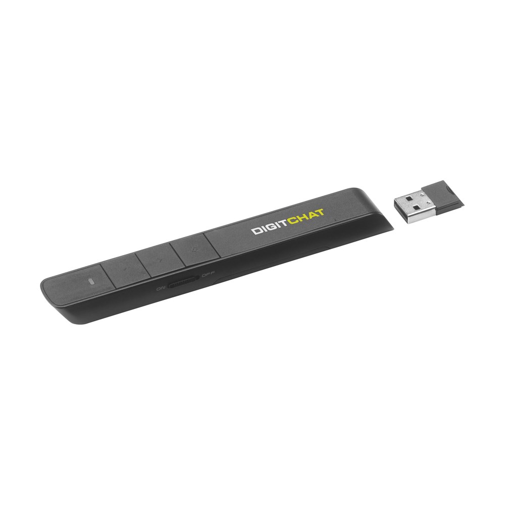 Draadloze laserpointer met USB plug, page up/down functie en rode laserpointer en een bereik van meer dan 10 meter. De perfecte tool voor het moeiteloos op afstand regelen van uw schermpresentatie. Bruikbaar onder Windows, Mac en Linux. Incl. celbatterij en gebruiksaanwijzing. Per stuk in doosje met magneetsluiting.