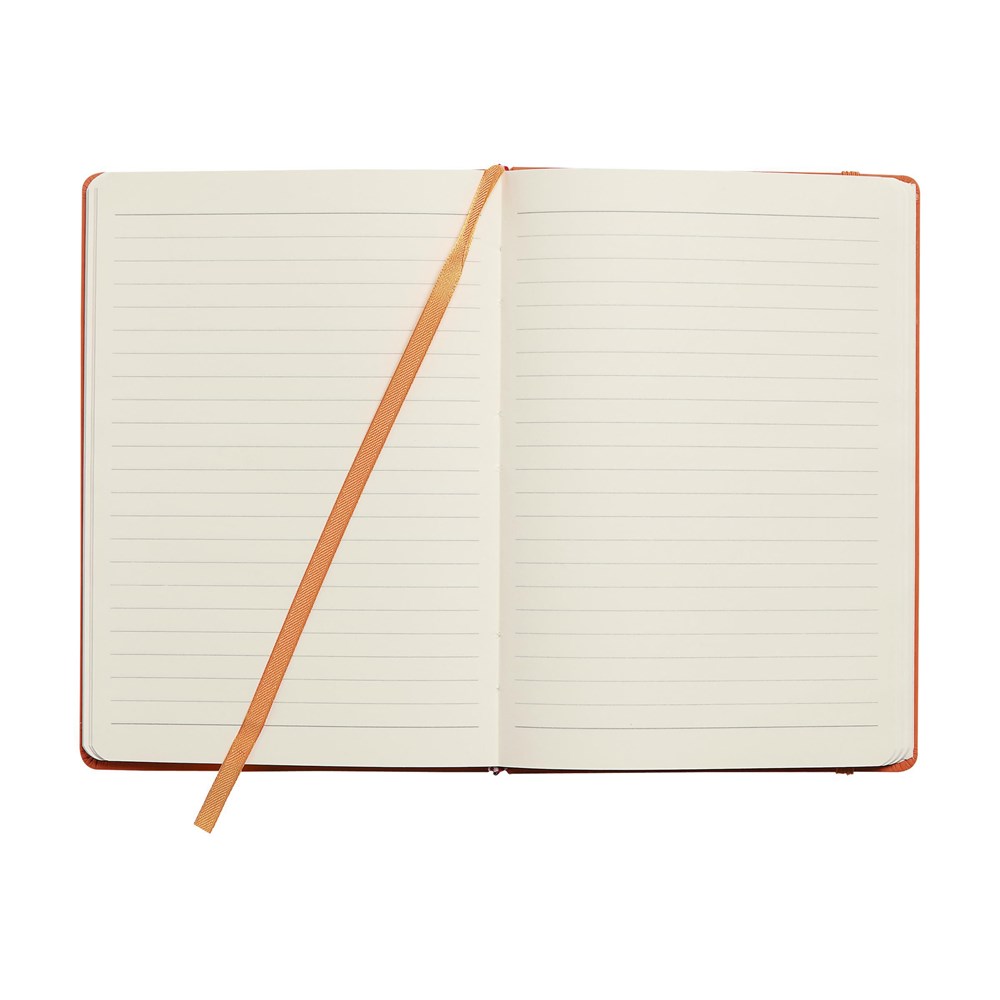 Notitieboek in A4-formaat met ca. 96 vel crèmekleurig, gelinieerd papier (80 g/m²), harde kaft, elastische sluiting, gebonden rug en zijden leeslint.