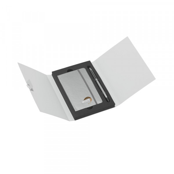 2-delige geschenkset: handzaam notitieboekje in A6-formaat, met ca. 96 vel gelinieerd, crèmekleurig papier, handige sluitelastiek en leeslint. Incl. bijpassende, zwartschrijvende touchscreen pen. Per set in doos.