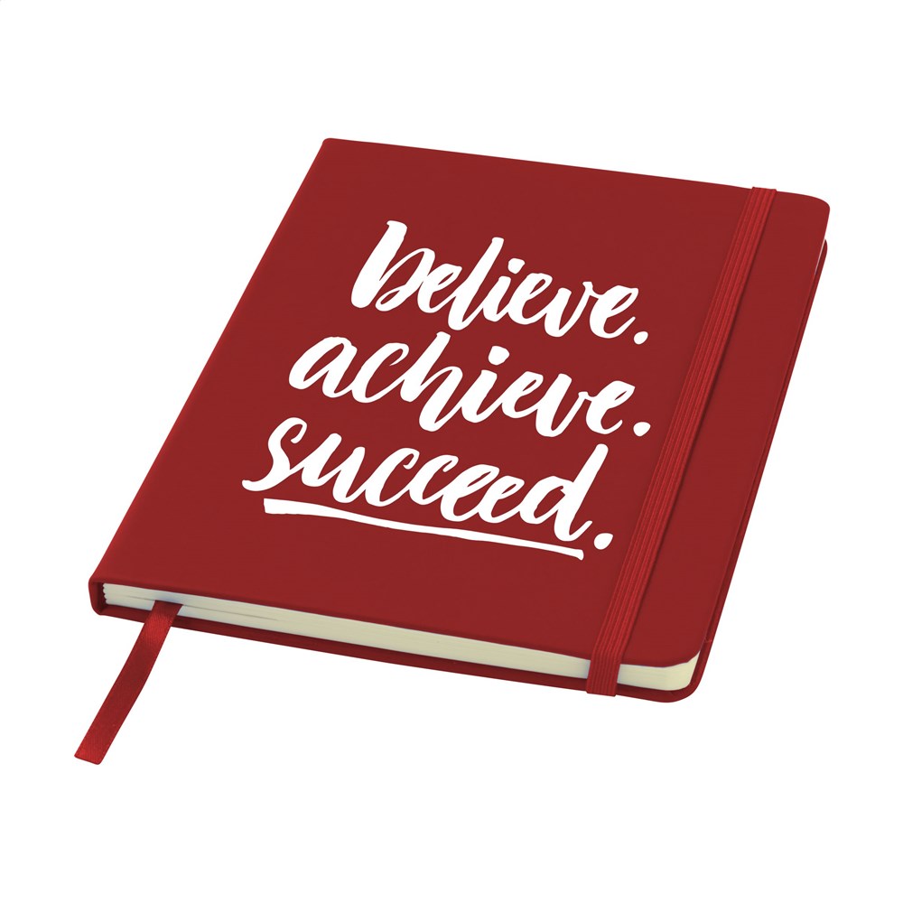 Praktisch notitieboekje in A5-formaat. Met harde PU cover, ca. 80 vel crèmekleurig, gelinieerd papier (70 g/m²), elastische sluiting en leeslint.