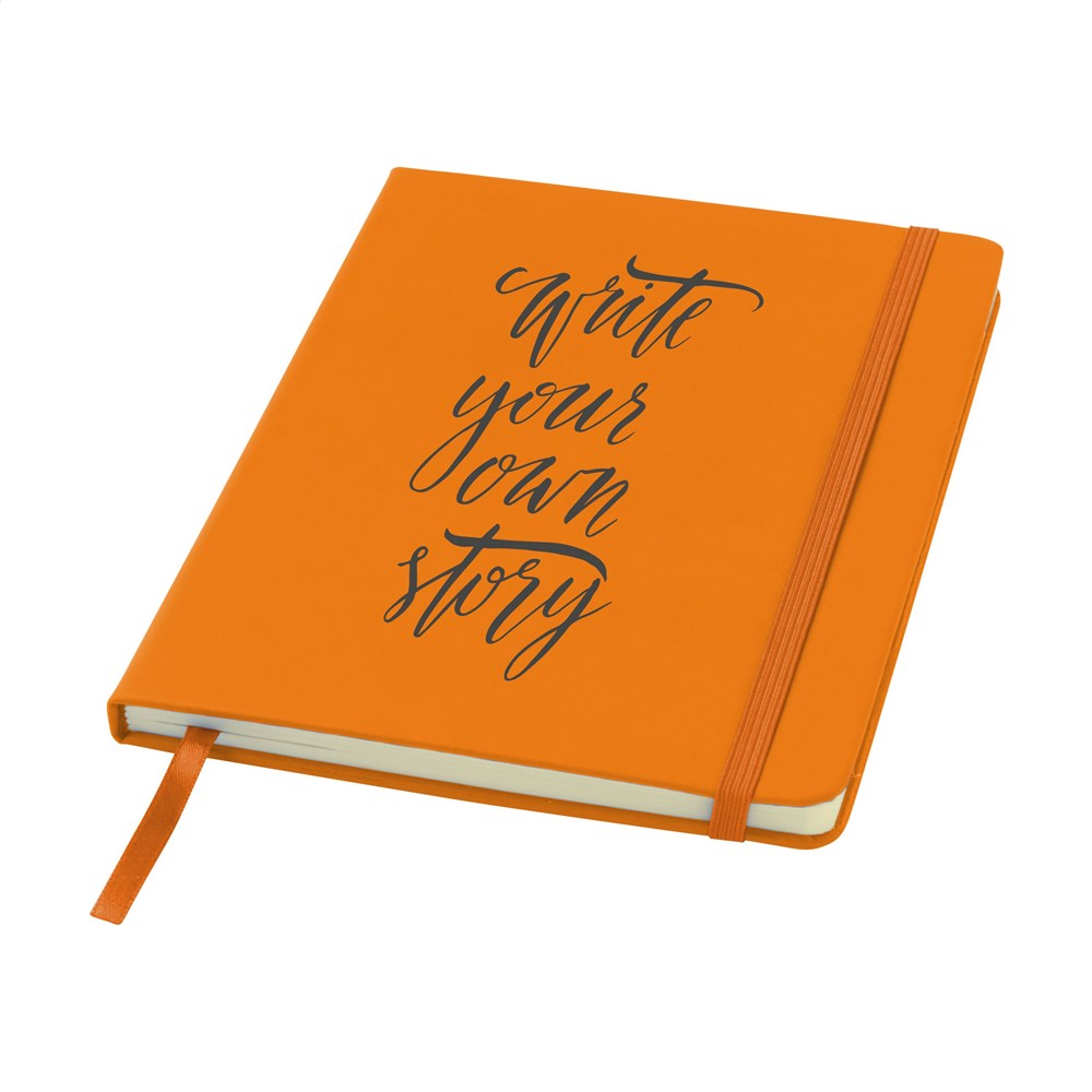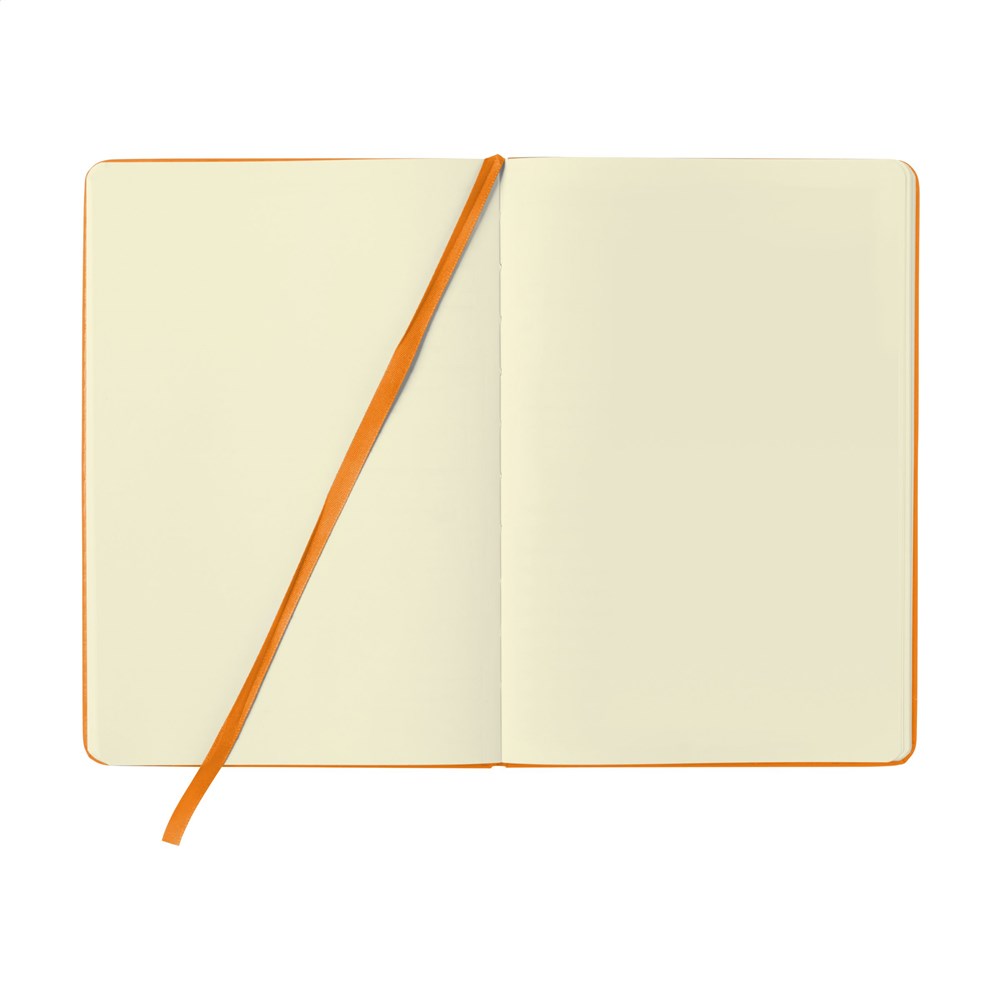 Praktisch notitieboekje in A5-formaat. Met harde PU cover, ca. 80 vel pagina's crèmekleurig, ongelinieerd papier (70 g/m²), elastische sluiting en leeslint.