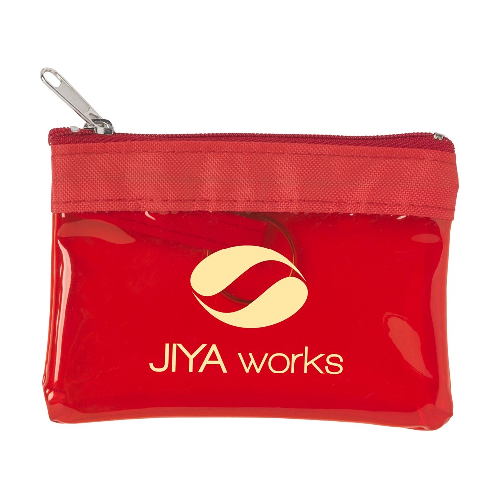 Transparant PVC geld-/sleutelbeursje met rits en RVS sleutelring. Ook geschikt als opbergetui voor het veilig meenemen van een mondkapje.