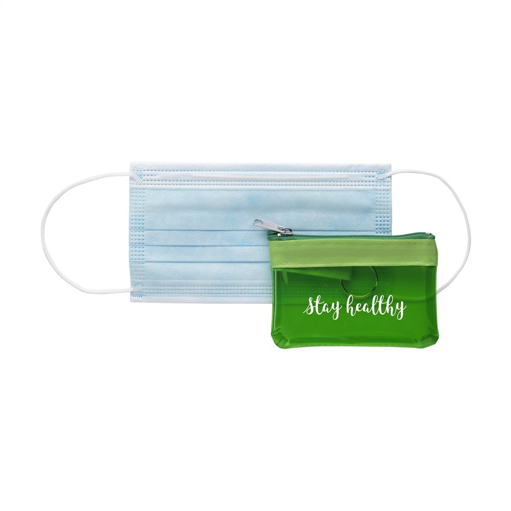 Transparant PVC geld-/sleutelbeursje met rits en RVS sleutelring. Ook geschikt als opbergetui voor het veilig meenemen van een mondkapje.