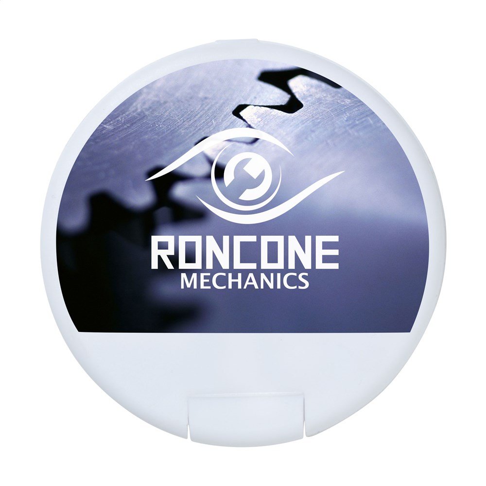 Ronde, kunststof dispenser gevuld met ca. 12 gram (ca. 55 stuks) frisse, suikervrije pepermuntjes. mehr