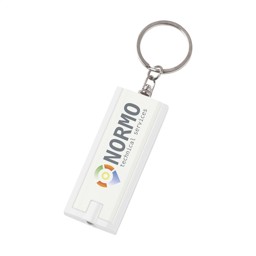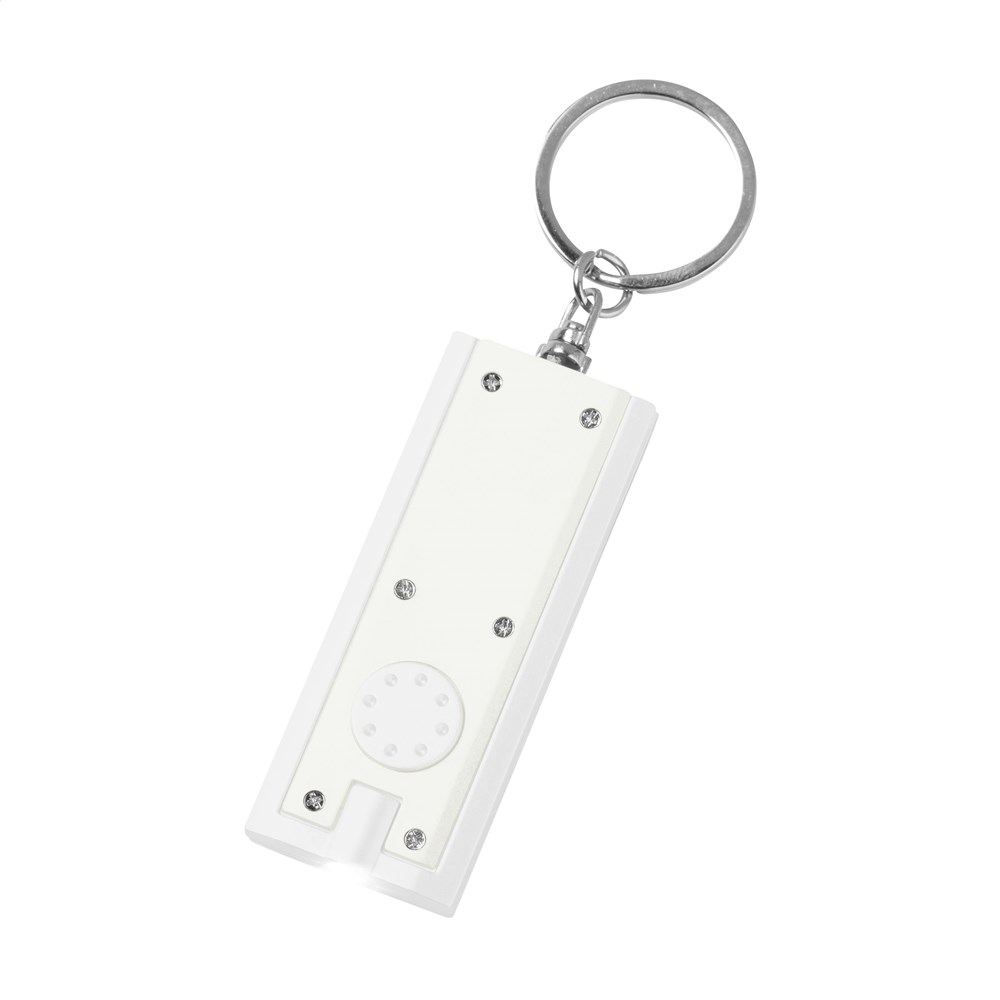 Sleutelhanger met felwit LED-lampje, incl. celbatterijen.