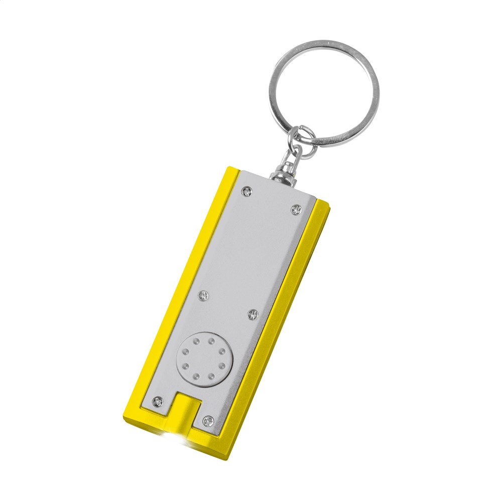 Sleutelhanger met felwit LED-lampje, incl. celbatterijen.