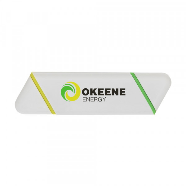 Markeerstift met 2 verschillende fluorescerende kleuren en beitelpunt met 2 schrijfbreedtes.
