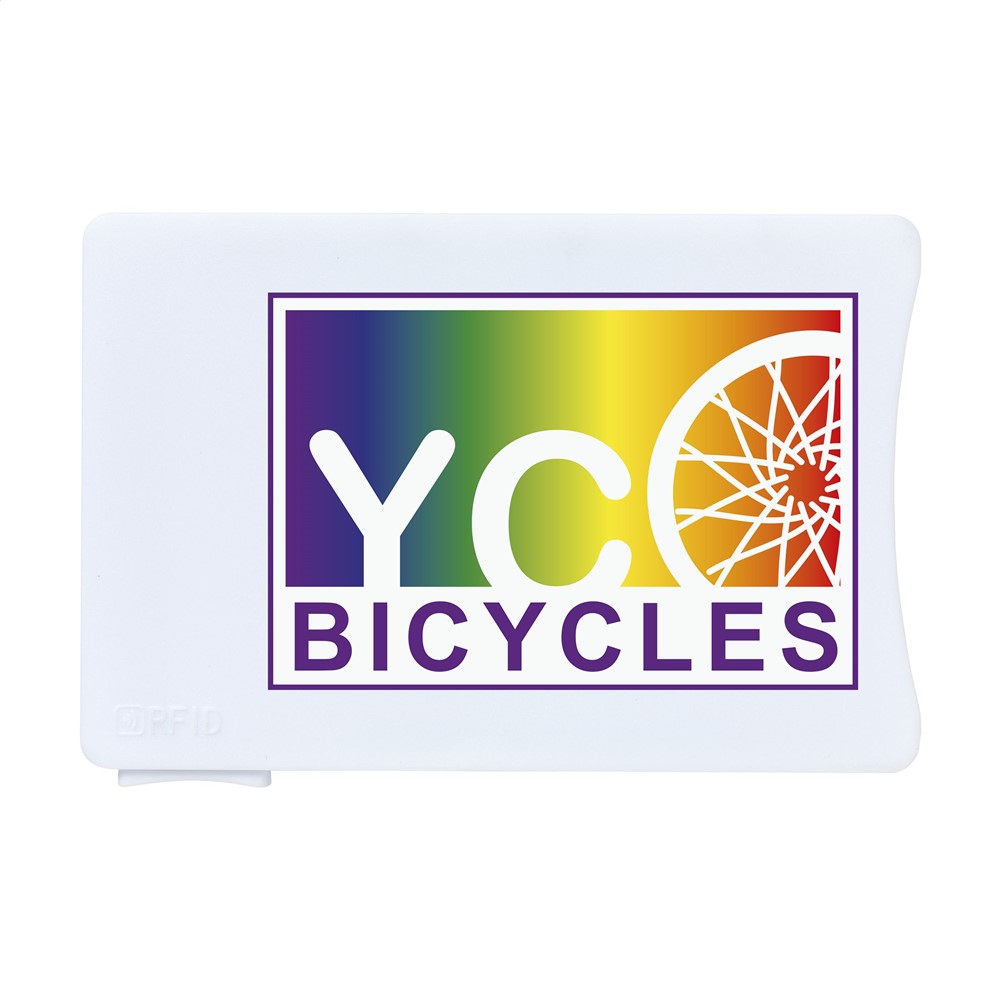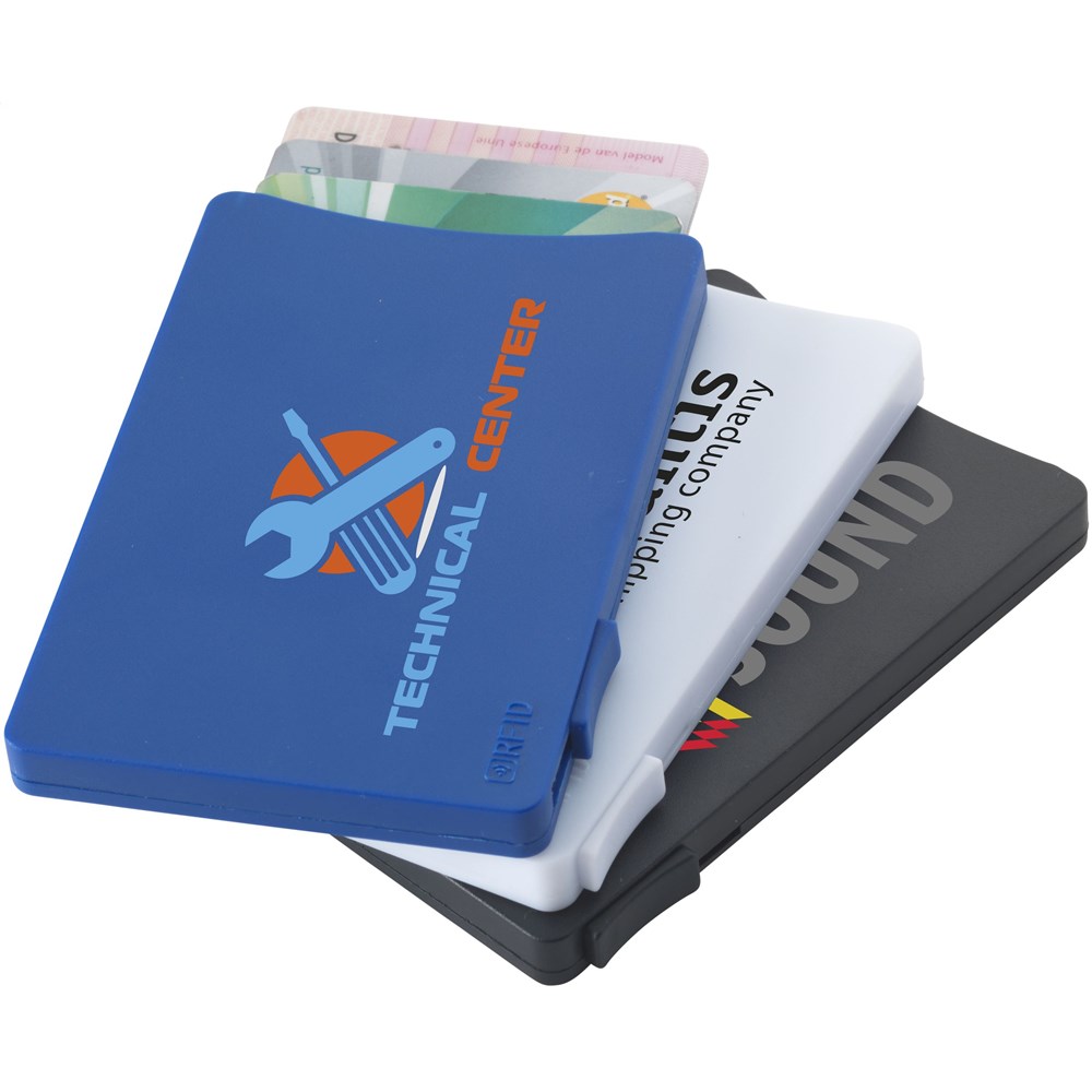 Praktische RFID blokkerende multi-kaarthouder van kunststof met handig schuif-systeem. Beschermt pasjes tegen onvrijwillig, digitaal uitlezen van identiteitskaarten, creditcards en bankpasjes. Geschikt voor 3 passen.