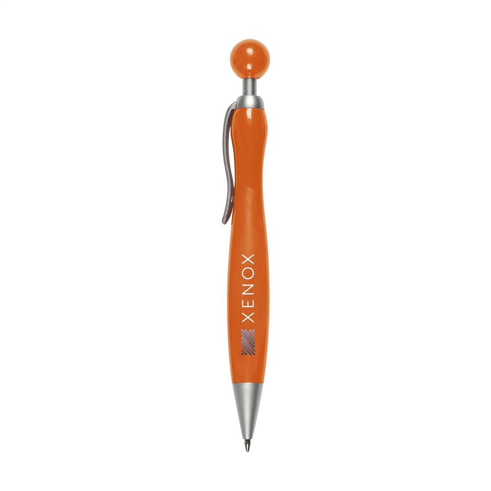 Blauwschrijvende balpen met opvallende drukknop. mehr