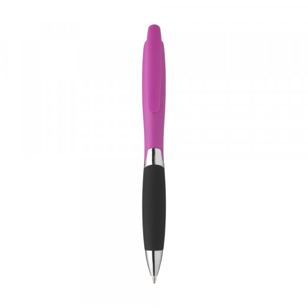 Stijlvolle, blauwschrijvende balpen met gripvast voorstuk, clip/drukknop en zilverkleurige accenten. mehr