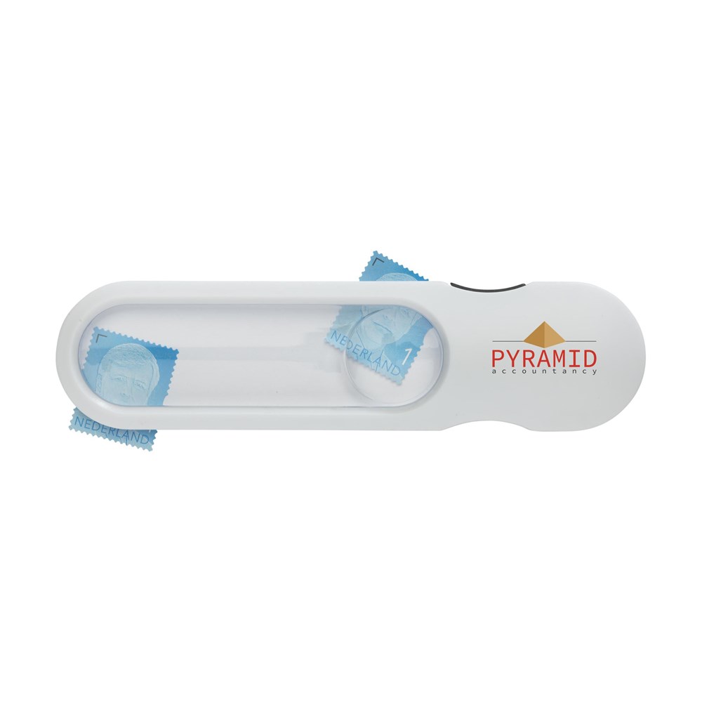 Vergrootglas met twee verschillende sterktes: vergrotingsfactor 2 en 3. Met felwit LED-lampje. Incl. celbatterijen.