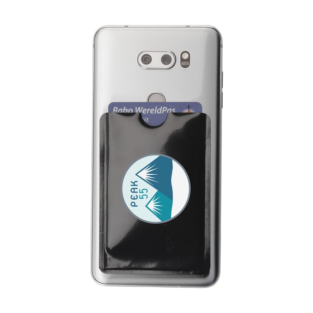 Flexible RFID kaarthouder van aluminium/PP om skimmen en digitaal uitlezen van passen te voorkomen. Eenvoudig te bewaren in een portemonnee of op de achterzijde van een mobiele telefoon door de handige plakstrip. Geschikt voor 1 pas. Opdruk in de kleur wit is niet mogelijk.