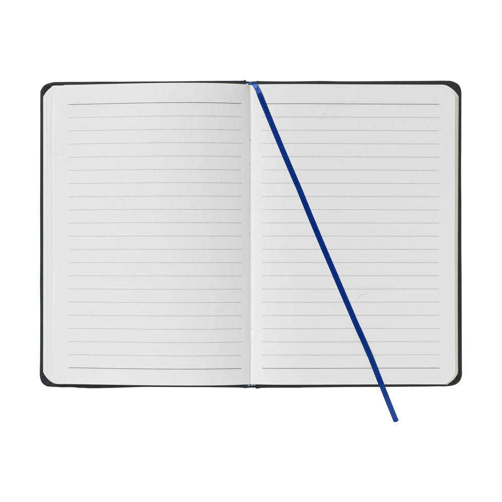Praktisch en handzaam notitieboekje in A5 formaat. Met 80 vel crèmekleurig gelinieerd papier, stevige PU cover, elastische sluiting, gebonden rug en zijden leeslint.